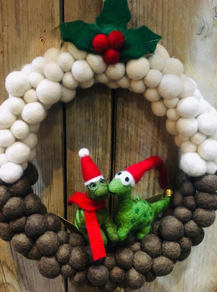 This Christmas Dinosaur is all wrapped up in his festive hat and scarf, luckily he has his specs on so he can see through the winter snowstorms! Handmade and needle felted in Nepal.