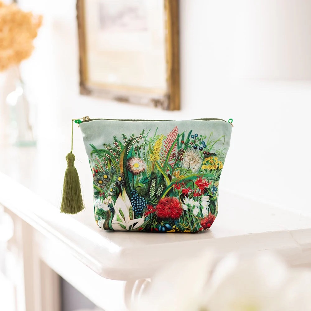 NZ Native Flowers Velvet Cosmetic Bag