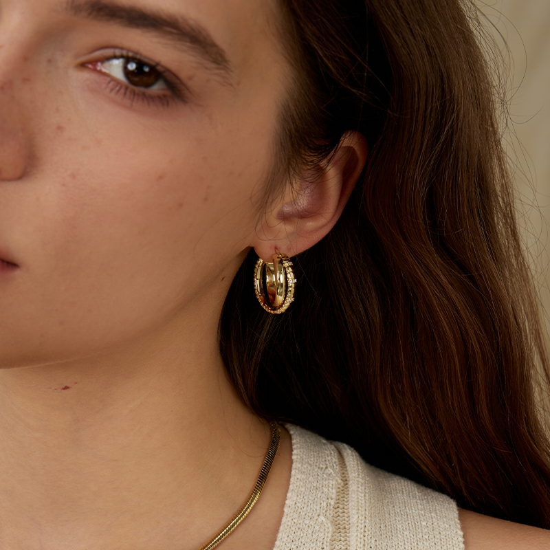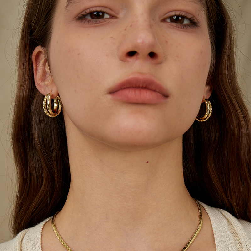 ARSIS – Triple Row Hoop Earrings(Gold)